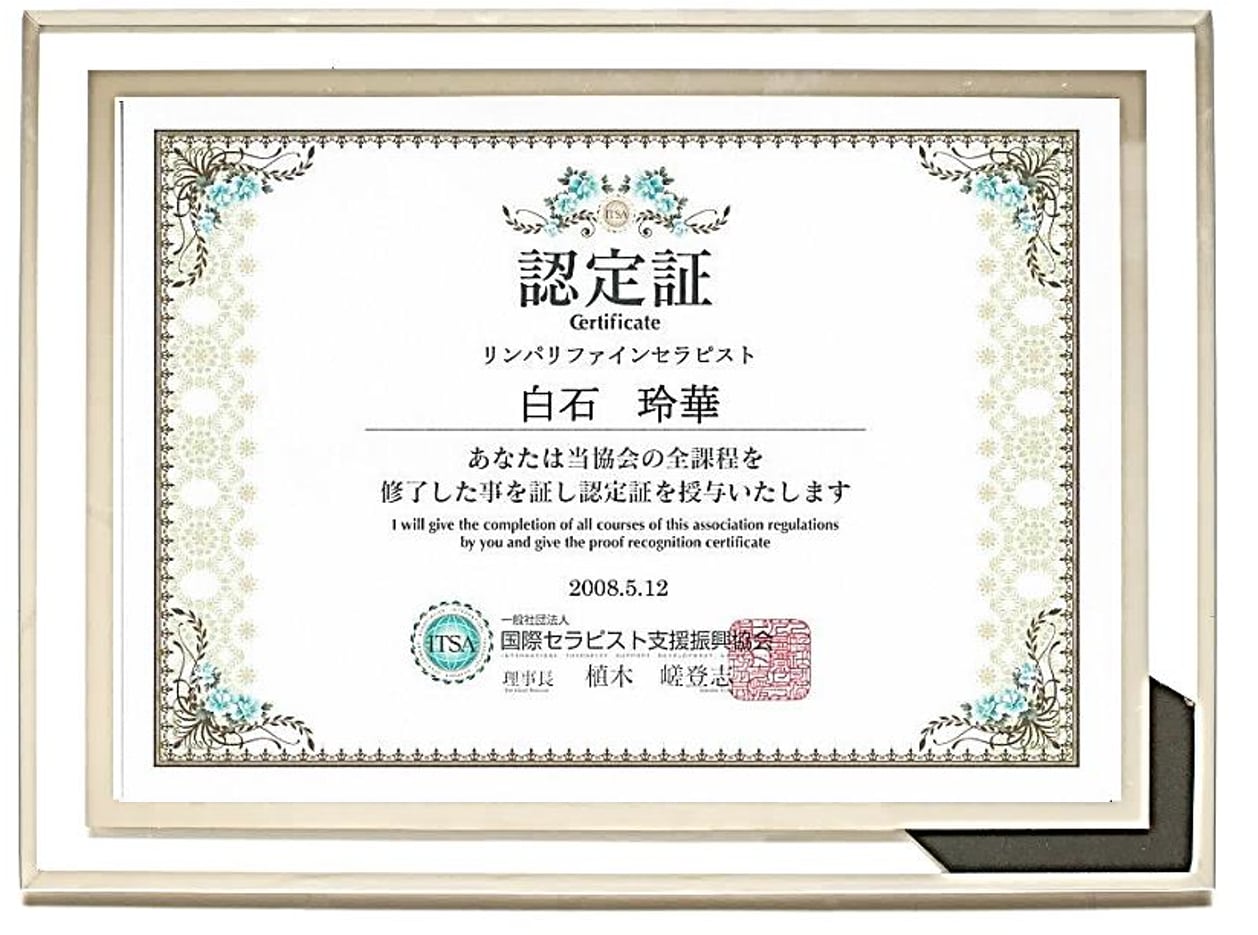 国際セラピスト認定証 額縁【アクリルフレーム】